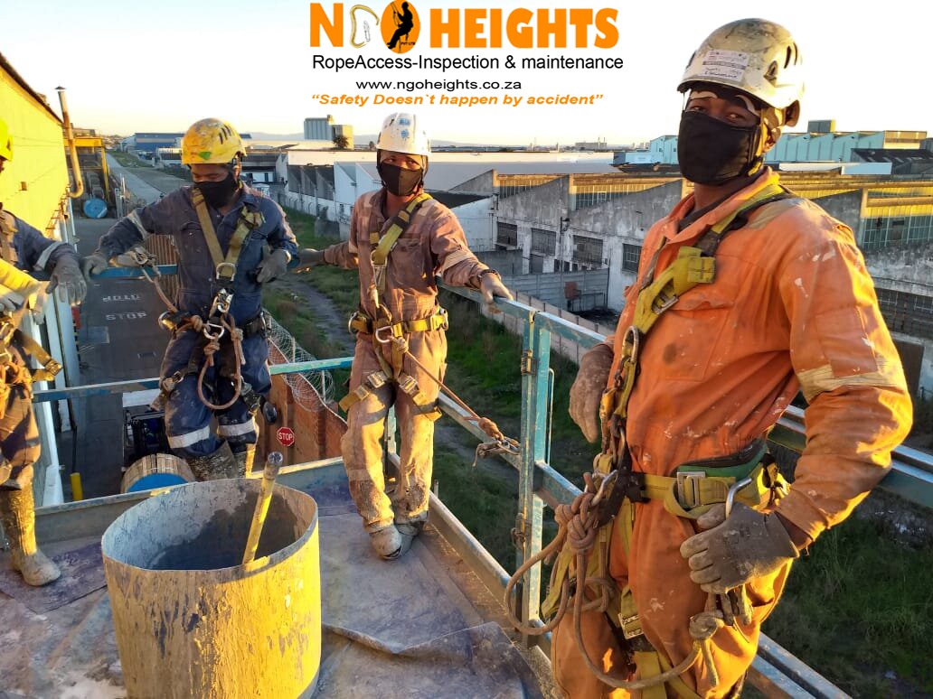 NGOHeights (Pty) Ltd Maintenance & Inspection provides professional multiservice rope access inspection and maintenance. It specialises in high access maintenance and inspection projects by means of specialised industrial abseiling techniques. It offers national and international onshore and offshore inspection and maintenance and other related services. It accesses high risk and difficult to reach spaces safely, productively and with a broad range of technical rope access skills. NGOHeights (Pty) Ltd is guided by the following vision;
